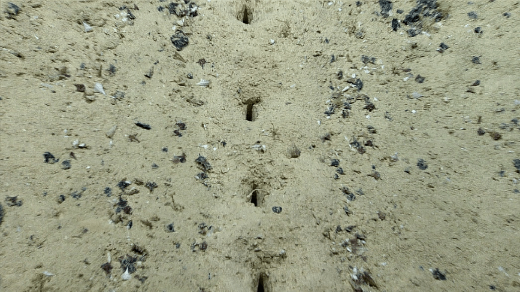 Although the origin and method of construction of the holes are unclear, the researchers say they speculate that they may have been left by digging and removal by organisms living in the sediment. On a recent expedition, researchers used a submersible to take sediment samples from around the cave to see if there was any life inside.