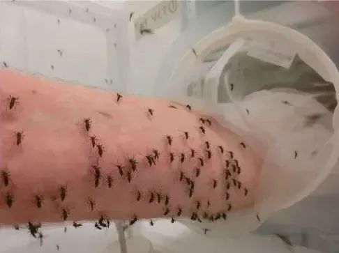 Aedes aegypti does not like animal blood, so the method commonly used in the laboratory of “wrapping rabbit blood with a thin plastic film to simulate the skin” is not very effective; the simplest and most efficient way is to put the arm directly into the mosquito cage.