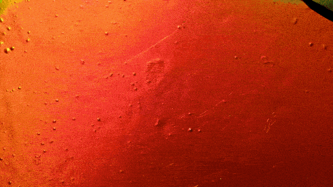When they stretched the film, the color changed as the stretching and thinning of the film caused the nanoscale structure to reconfigure, reflecting slightly different wavelengths. The film remains red in the thinnest areas and turns blue in the thicker areas. Also, pressing things like strawberries, coins or fingers into the red film will leave a fine green imprint.