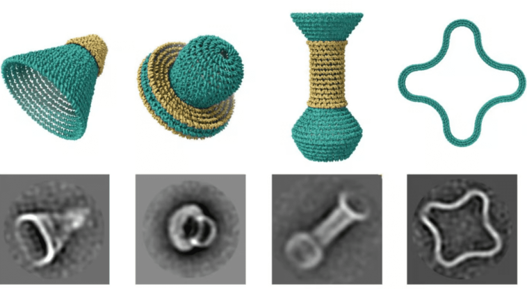 The DNA nanostructures were assembled and imaged by co-authors Raghu Pradeep Narayanan and Abhay Prasad in professor Hao Yan’s lab at Arizona State. They created small, pottery-like structures from DNA — vases, bowls, and hollow spheres. With nanometer precision, they even put these structures inside one another, much like a Russian doll.