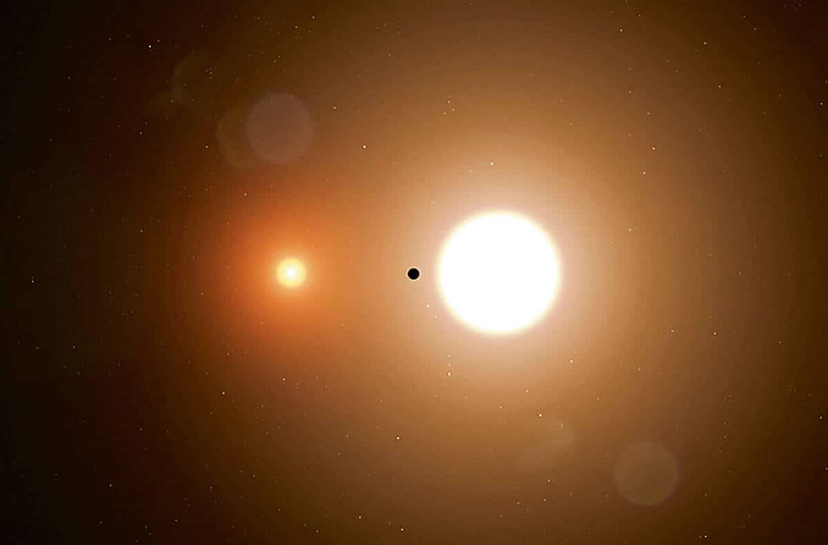 The planet belongs to a binary star system, TOI-1452 and TIC 420112587, two red dwarfs, smaller and dimmer than the sun, separated by about 14.5 billion kilometers, or 2.5 times the distance between Pluto and the sun.