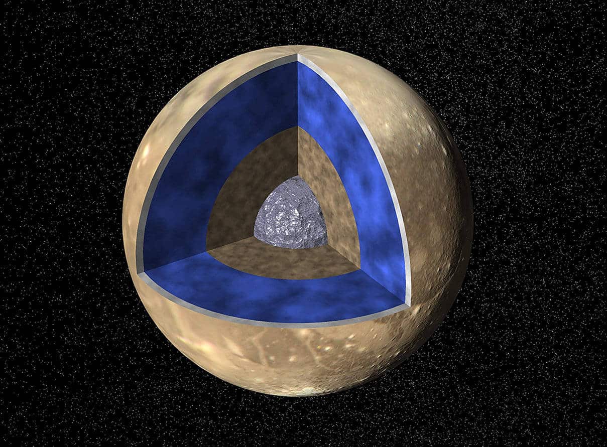 Ganymede has a diameter of about 5,268 kilometers, which is two-fifths the size of Earth. Although it is smaller than Earth, its water reserves are estimated to be 26.5 times that of Earth. However, Ganymede’s surface is bare and has no atmosphere, with an average surface temperature of only -163°C and no liquid water. In fact, just like other moons, Ganymede’s liquid water is below the surface, reaching depths of hundreds of kilometers.