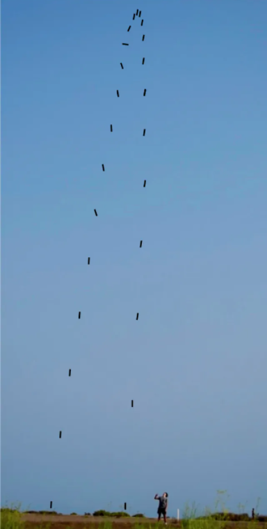 It’s 30cm tall, weighs 30g, and consists almost entirely of carbon fiber bows that act as springs and rubber bands that store energy in tension.