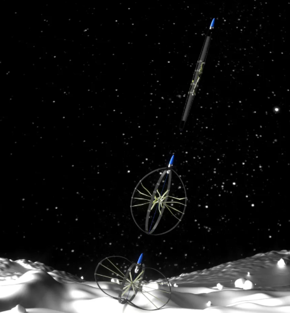 The robot can jump to the edge of an inaccessible cliff or to the bottom of a crater, collect a sample, and return to the wheeled rover. ” said Hawkes, who and his team are currently working with NASA to develop the system, with the goal of launching it to the moon within the next five years.​