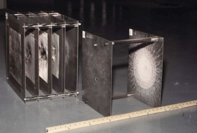 This means that if you send a spacecraft into deep space, it’s bound to be hit by these little space rocks at some point. Knowing this, spacecraft engineers will take certain safeguards when building their vehicles to prevent impacts from micrometeoroids. They’re usually protected with something called a Whipple shield, which is a special multi-layer barrier. If the shield is hit by a micrometeoroid, the particles will pass through the first layer and shatter further, so the second layer will be hit by smaller particles. This shielding is often used around sensitive parts of a spacecraft to provide additional protection.