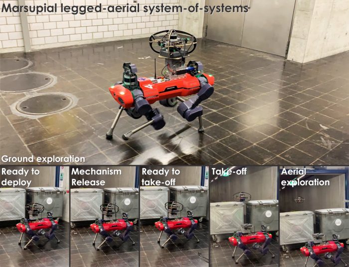“Our study builds upon a very close collaboration between our lab (ARL—Autonomous Robots Lab), now located at NTNU, Norway (and previously in Reno, Nevada), and our colleagues at ETH Zurich’s RSL—Robotic Systems Lab,” Paolo De Petris, one of the researchers who carried out the study, told TechXplore. “Our primary objective was to satisfy the promise we made, at the beginning of the competition, to deploy a flying robot from a walking one.”